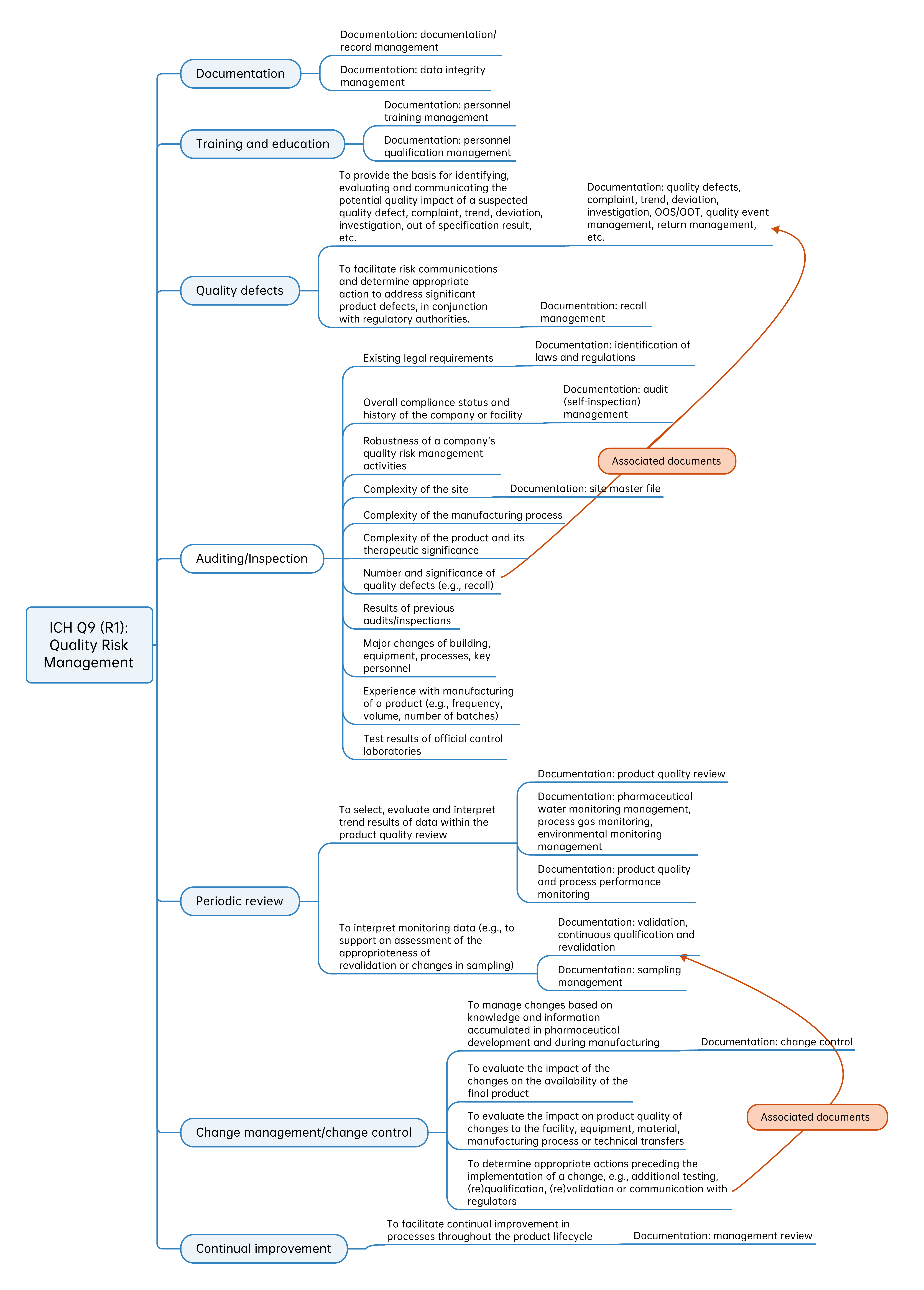We use a mind map to illustrate the key points of QRM application for each topic and the corresponding implementation documents for industry reference.
